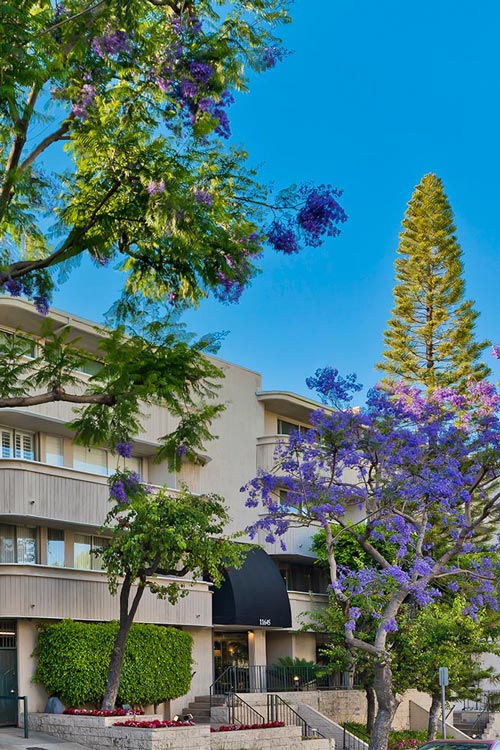 Bright + Sunny top floor condo in the Montana Terrace. This 1 bedroom plus a den/office/possible 2 nd bedroom is turnkey and ready for move in. Kitchen with breakfast bar opens to the dining room. The bonus area has 2 closets and can be used as an office, den or 2 nd bedroom. Large bedroom with great closets and bathroom with tub/shower combo and vanity with lots of counter space. Balcony off the living room has lovely tree top views. Building has pool, jacuzzi, security, onsite management. Homeowner’s dues include water, gas and EQ insurance. Unit comes with 1 parking spot in secured garage. Easy walk to all the great shops and restaurants in Brentwood.